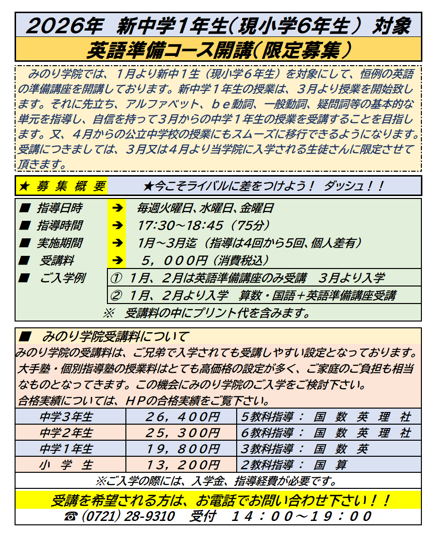 新着情報詳細 | あたたかい心で鍛えます 進学塾 富田林 みのり学院