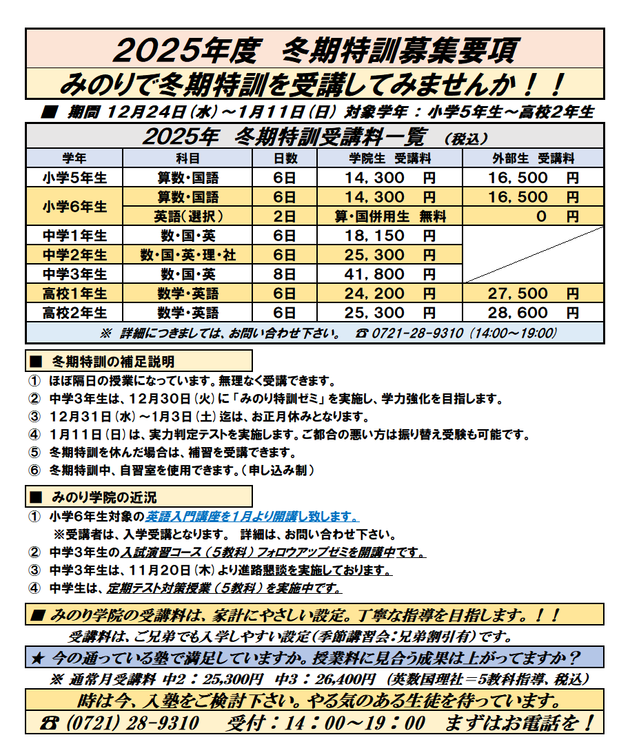 新着情報詳細 | あたたかい心で鍛えます 進学塾 富田林 みのり学院
