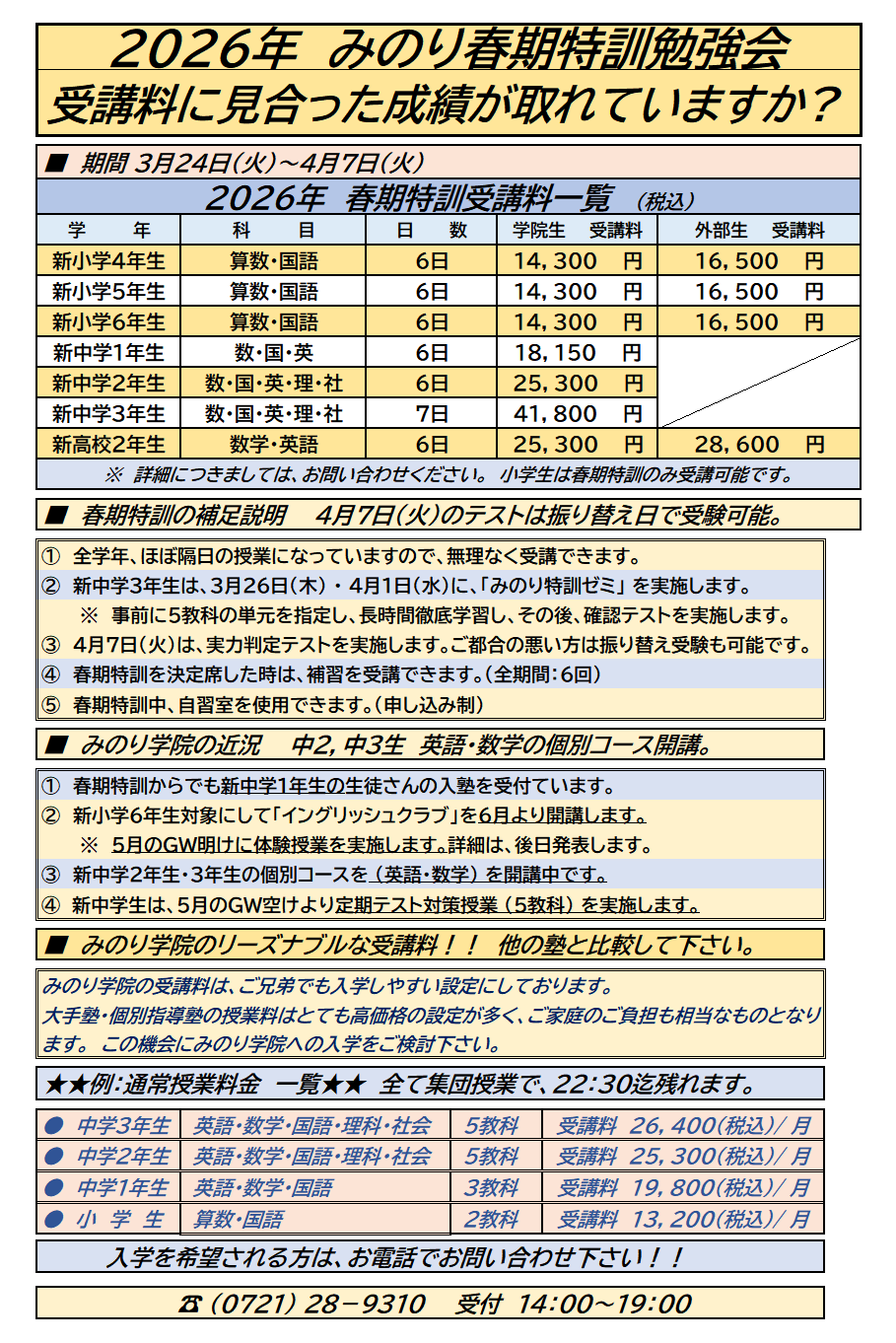 2026.02.27 春期特訓生徒募集について!