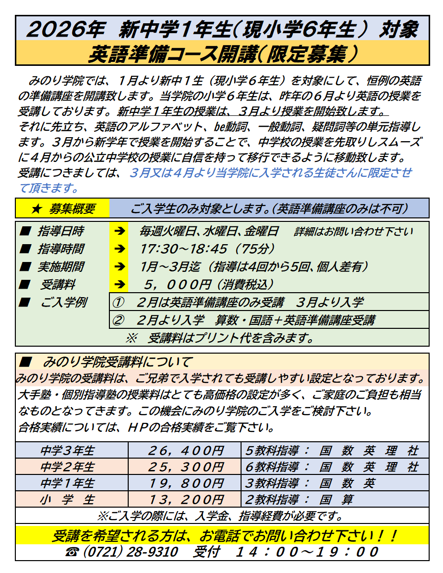 新着情報詳細 | あたたかい心で鍛えます 進学塾 富田林 みのり学院